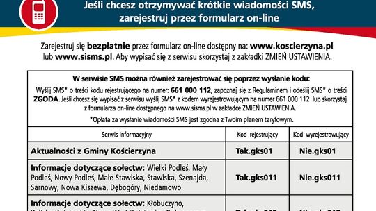 Jeśli chcesz otrzymywać wiadomości SMS zarejestruj się przez formularz on-line