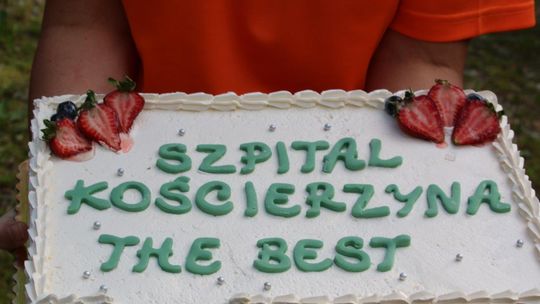 Goście spoza Kościerzyny przywieźli niezwykle miły upominek: tort z napisem SZPITAL KOŚCIERZYNA THE BEST. Gest ten pracownicy szpitala potraktowali jako duże wyróżnienie!