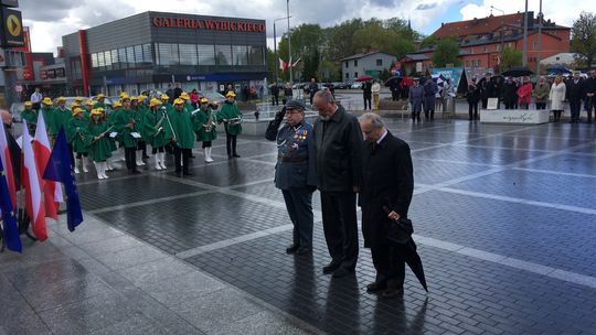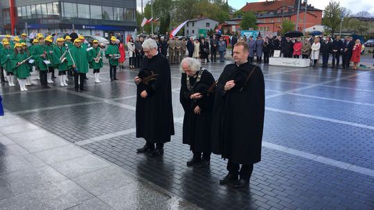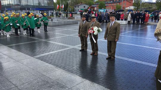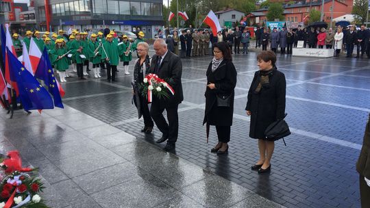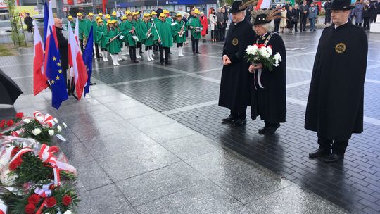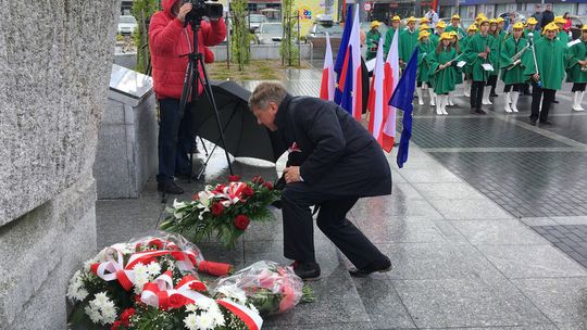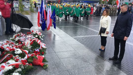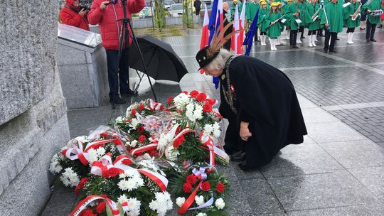 Na placu przed pomnikiem zebrali się samorządowcy, przedstawiciele służb mundurowych i szkół oraz delegacje związków i stowarzyszeń.