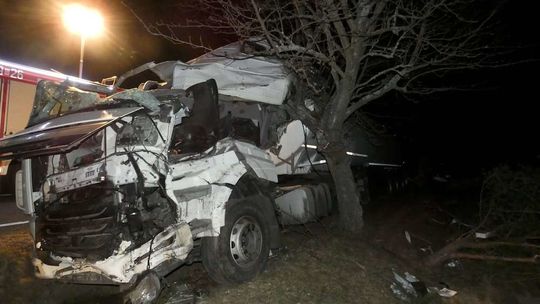 Tuż po północy 24 kwietnia br dyżurny kościerskiej policji odebrał zgłoszenie o wypadku drogowym na drodze krajowej nr 20 w miejscowi Korne . Natychmiast na miejsce zostali wysłani funkcjonariusze oraz służby ratownicze. Funkcjonariusze z wydziału ruchu drogowego zabezpieczyli miejsce zdarzenia. Policjanci sporządził dokumentację fotograficzną i wykonał szkic sytuacyjny, przesłuchali świadków. Badanie alkomatem wykazało, że osoby kierujący był trzeźwy. Pracujący na miejscu mundurowi wstępnie ustalili, że 31-letni kierujący samochodem ciężarowym marki daf z naczepą wjechał do rowu i uderzył w drzewo. W wyniku tego zdarzenia kierujący ciężarówką i dwie pasażerki trafili do szpitala. Aktualnie śledczy ustalają szczegóły wypadku.