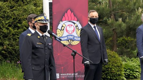 Oprócz prezydenta Andrzeja Dudy w uroczystościach wręczenia promes udział wzięli m.in.: komendant główny straży pożarnej Andrzej Bartkowiak, szef pomorskich strażaków Piotr Socha oraz wojewoda pomorski Dariusz Drelich.
