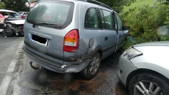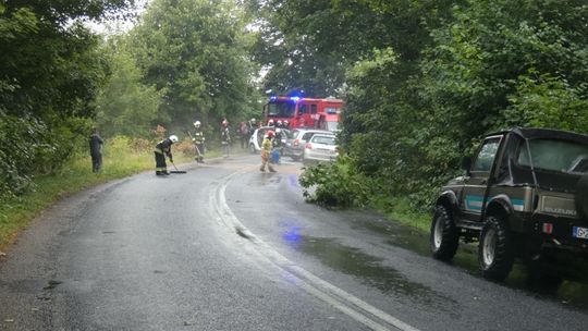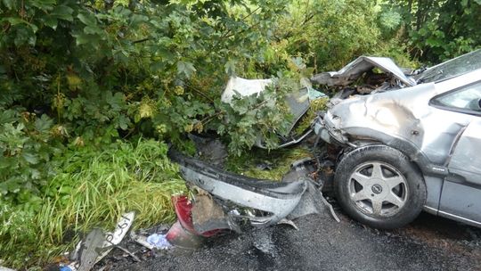 Na miejscu okazało się, że kierujący samochodem marki Renault 54-latek , na łuku drogi stracił panowanie nad pojazdem i uderzył bokiem w jadący z naprzeciwka samochód marki Opel, którym kierował 73-latek. Dodatkowo na oba pojazdy najechała jeszcze Toyota, którą kierowała 34-letnia kobieta. W wyniku zdarzenia najbardziej ucierpiał 54-latek, którego z miejsca zdarzenia zabrał helikopter i kierująca Toyotą 34-letnia kobieta. Do akcji ratowniczej strażacy musieli użyć sprzętu hydraulicznego.