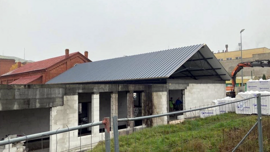 Roboty budowlane rozpoczęły się 7 kwietnia bieżącego roku, natomiast 20 października br. na dachu budowanej hali zawisła wiecha. W ostatnim okresie wykonano prace budowlane obejmujące wykonanie pokrycia dachowego na hali i łączniku z blachy warstwowej, montaż stolarki okiennej, wykonanie ścianek działowych w pomieszczeniach socjalnych zaplecza oraz przystąpiono do robót związanych z montażem wentylacji.