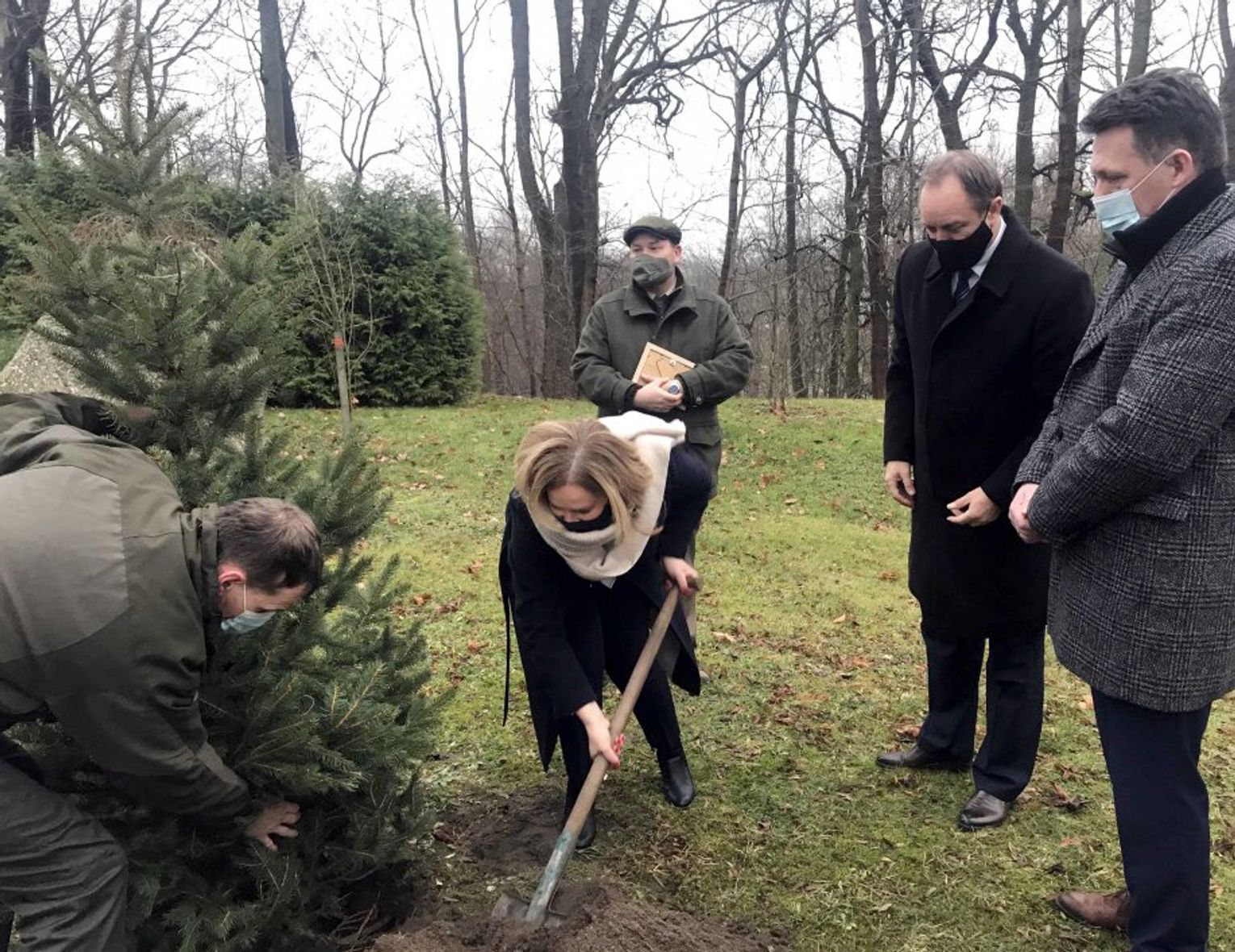 Podczas spotkania, marszałek Mieczysław Struk, starosta Alicja Żurawska, wicestarosta Piotr Laska oraz nadleśniczy Michał Jaworski symbolicznie zasadzili przy budynku Starostwa Powiatowego w Kościerzynie świerk, ufundowany przez Nadleśnictwo Kościerzyna.