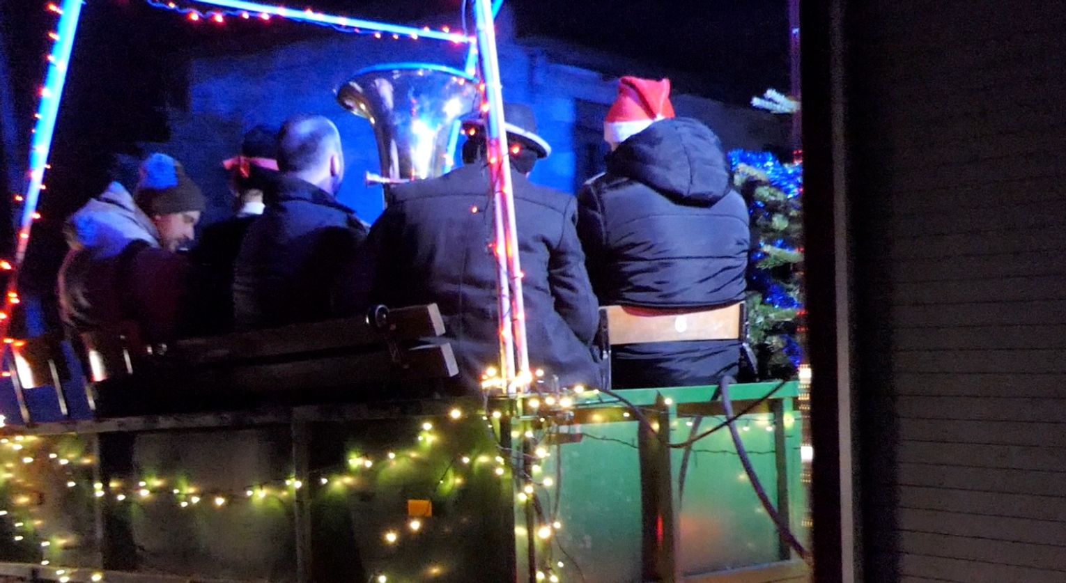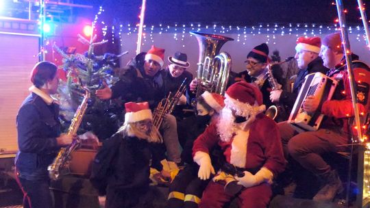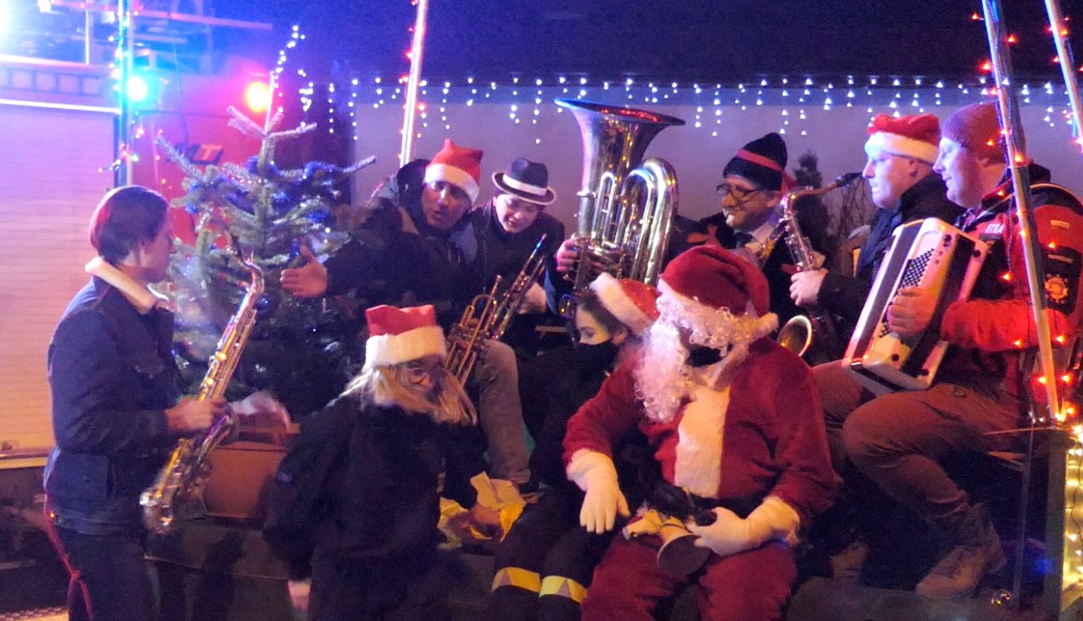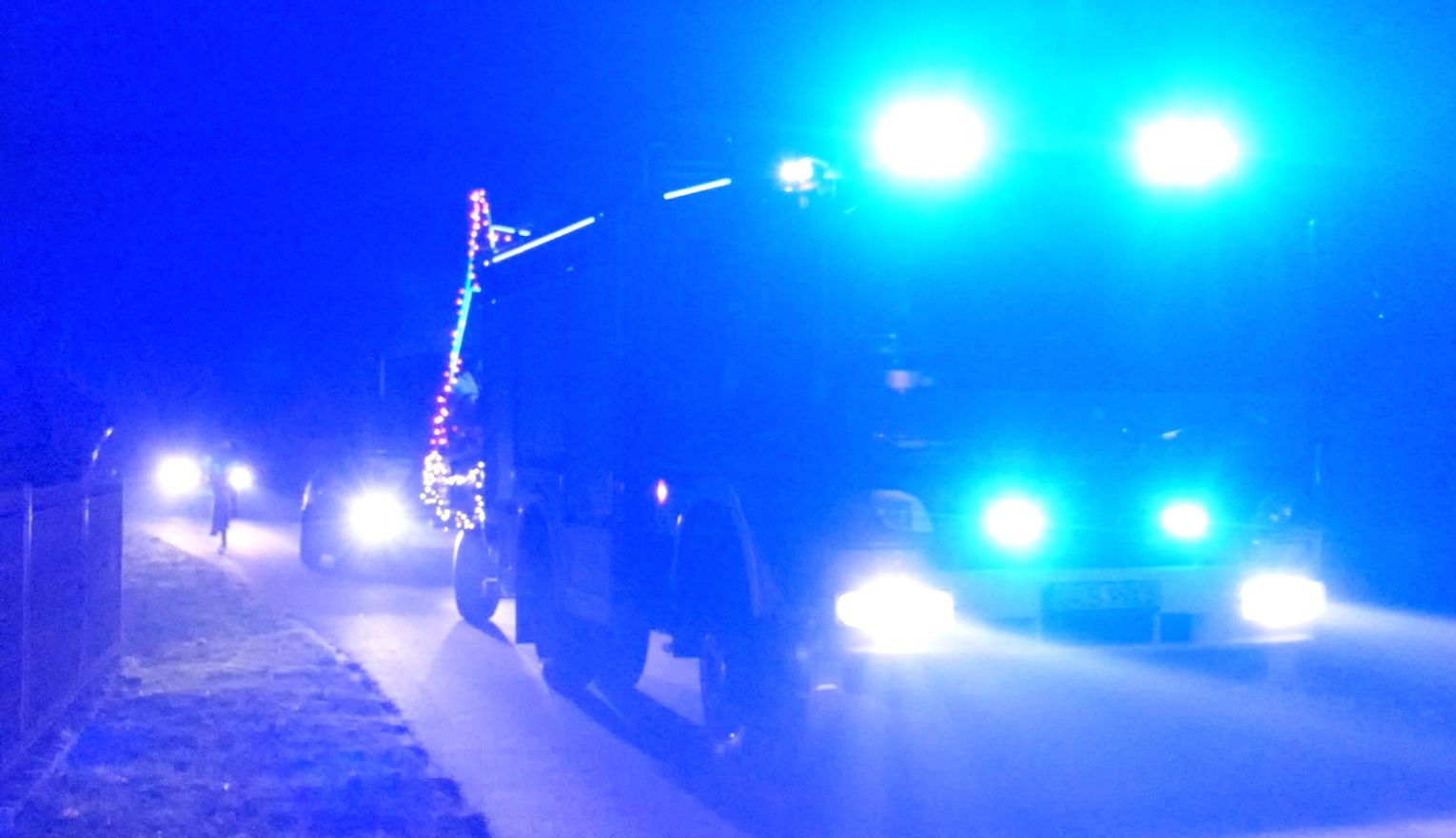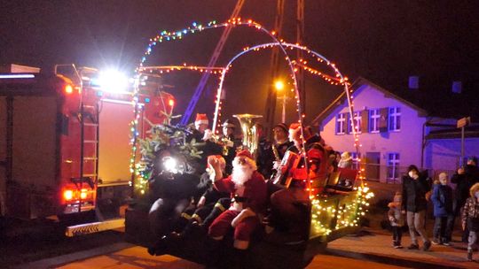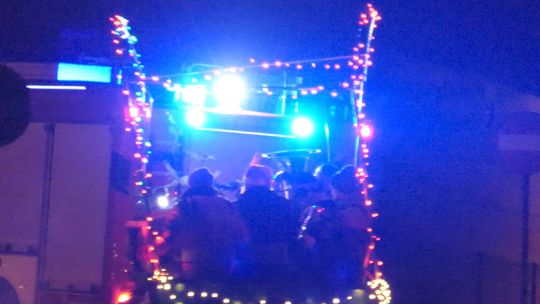 Konwój składał się z wozu strażackiego, który ciągnął za sobą przyczepę z.... orkiestrą dętą grającą kolędy.