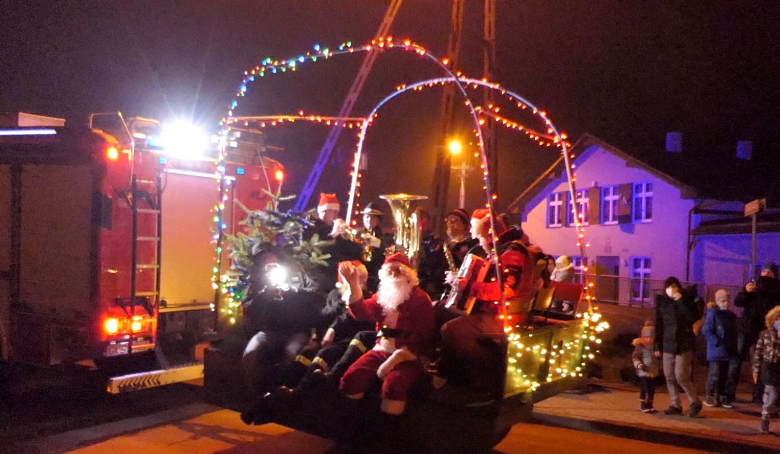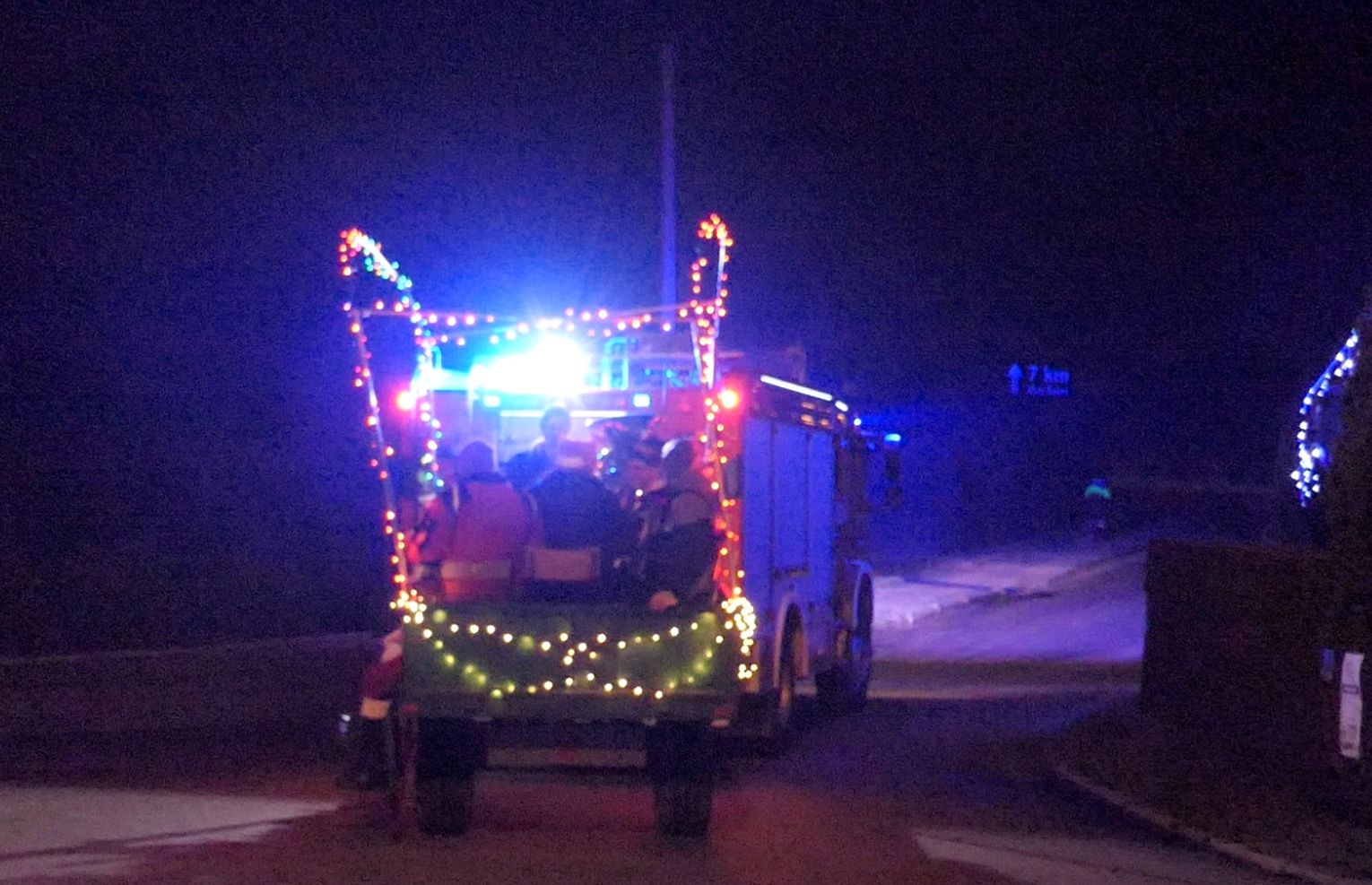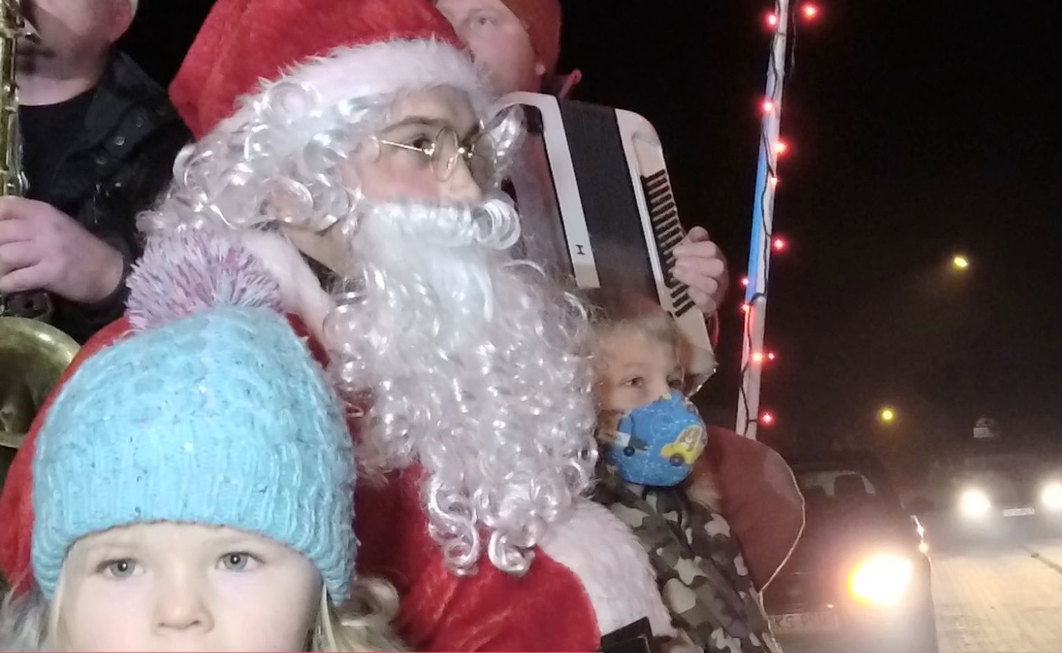 Konwój składał się z wozu strażackiego, który ciągnął za sobą przyczepę z.... orkiestrą dętą grającą kolędy.