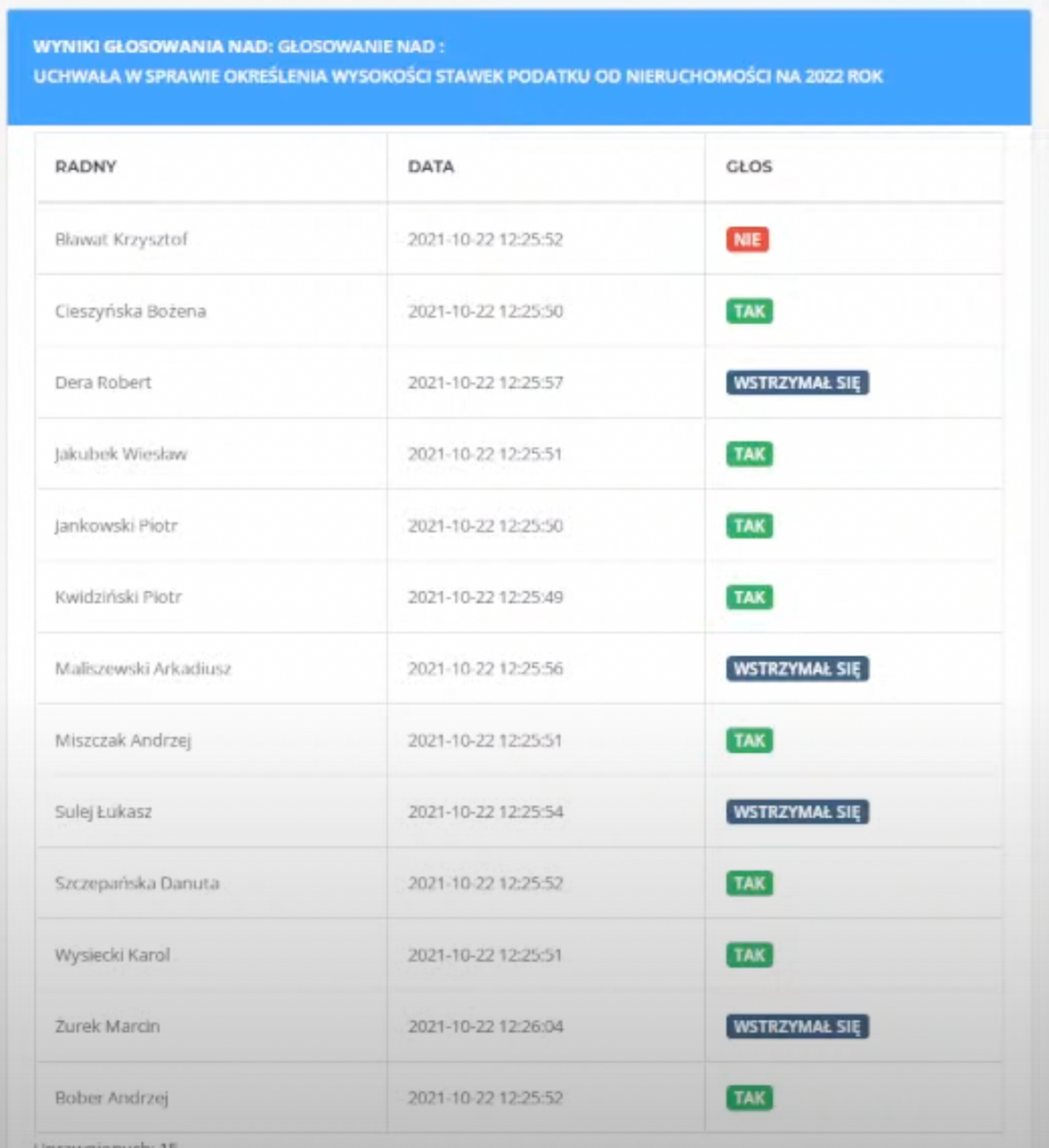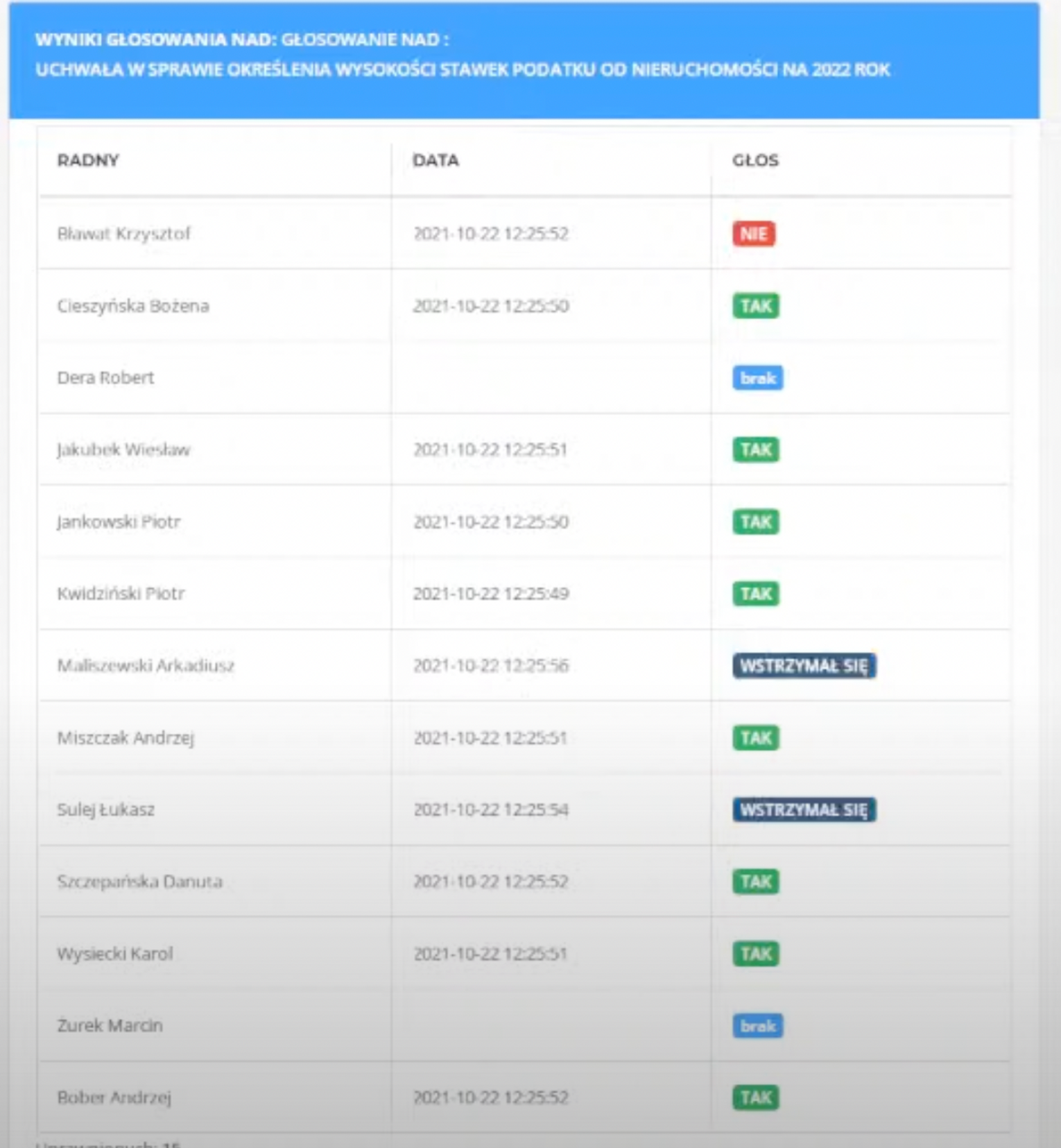 Poniżej wyniki głosowań :