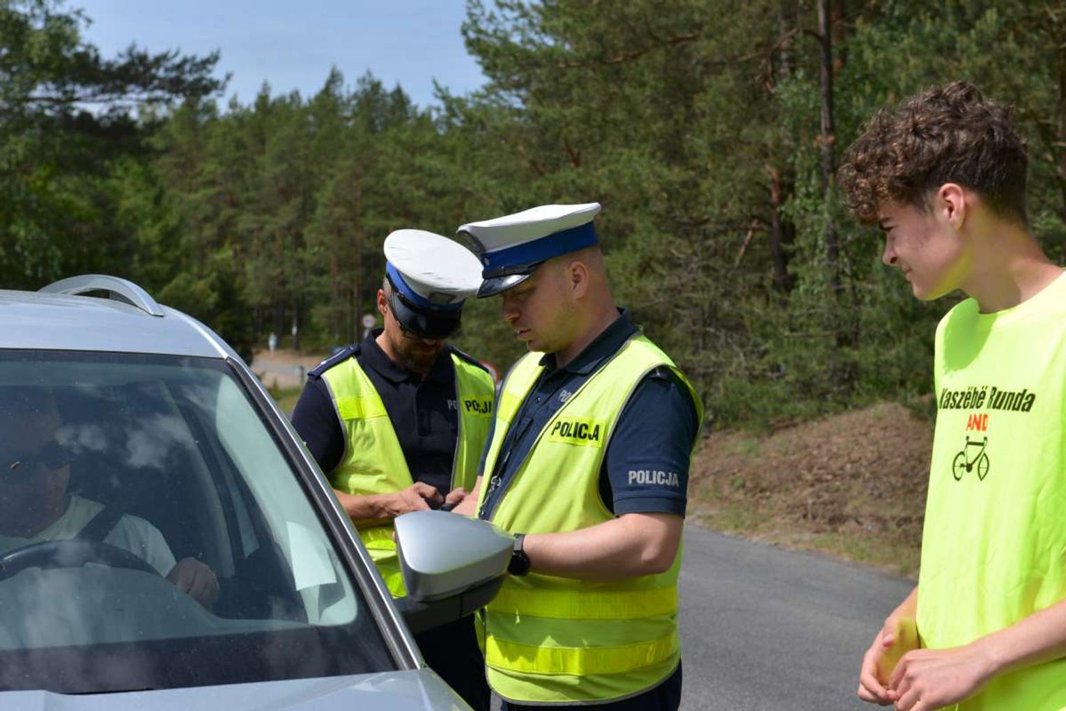 Przez całą niedzielę (12.06.2022 r.) funkcjonariusze Komendy Powiatowej Policji w Kościerzynie po raz kolejny zabezpieczali przejazd rowerzystów podczas imprezy sportowej „Kaszebe Runda" . Policjanci blokowali ulice, kierowali ruchem zapewniając bezpieczeństwo na drodze. Trasa przeważnie prowadziła głównymi ulicami miasta, a także drogą wojewódzką nr 214 . Funkcjonariusze dodatkowo kontrolowali trzeźwość kierujących samochodami na całej trasie przejazdu.