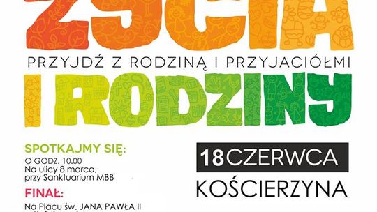 Trasa poprowadzi ulicami 8 Marca, Staszica, Skłodowską, Księży Zmartwychwstańców, Świętojańską, przez Rynek do Placu Jana Pawła II. Marsz zakończy się mszą odpustową Matki Bożej Kościerskiej Królowej Rodzin. Przyjdź z rodziną i przyjaciółmi!