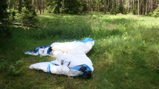 W niedzielę (19.06.2015 r.) o godzinie 12.30 oficer dyżurny otrzymał zgłoszenie telefoniczne o tym, że w Borsku doszło do wypadku z udziałem paralotni. Na miejsce natychmiast pojechali policjanci, którzy zabezpieczyli miejsce zdarzenia. Okazało się, że paralotniarz podczas podchodzenia do lądowania spadł na drzewa w pobliżu lotniska w Borsku gm. Karsin. 32- letni mieszkaniec Gdyni w wyniku upadku doznała ogólnych potłuczeń ciała. Mężczyzna został przetransportowany do szpitala w Chojnicach.