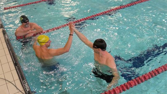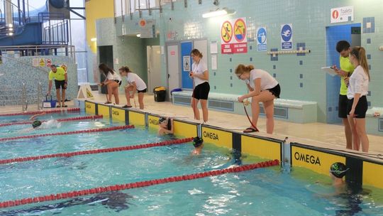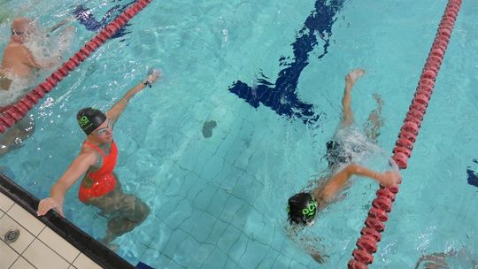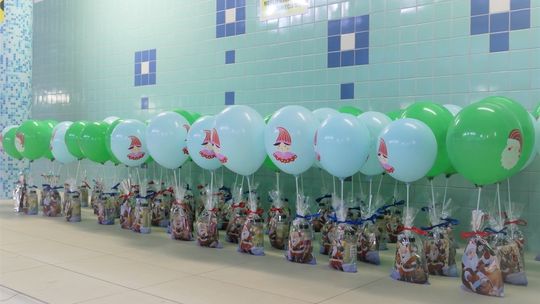 Uczniowie szkółek mieli nie lada gratkę, ponieważ ich instruktorzy wystartowali pokazowo w najtrudniejszej konkurencji pływackiej, czyli 100m stylem zmiennym, gdzie zawodnik ma do pokonania każdą długość pływalni innym stylem(motylkowy, grzbietowy, klasyczny i dowolny).
