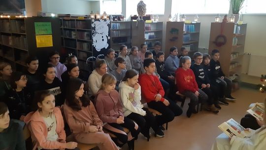 Czytanie wzbudziło zaciekawienie, uczniowie z wielką uwagą i skupieniem wysłuchali czytanej powieści. Całość ubogaciła piękna dekoracja w bibliotece i odpowiednia oprawa muzyczna przygotowana na tę okoliczność tworząc niepowtarzalny klimat.