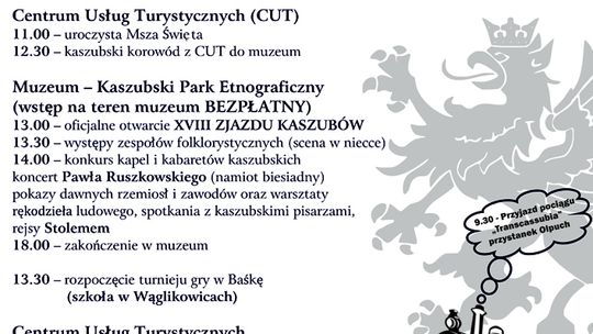Zapraszamy do wspólnej zabawy i integracji, w duchu przyjaźni i przywiązania do małej kaszubskiej ojczyzny. Serdecznie zapraszamy do udziału w XVIII Światowym Zjeździe Kaszubów we Wdzydzach!