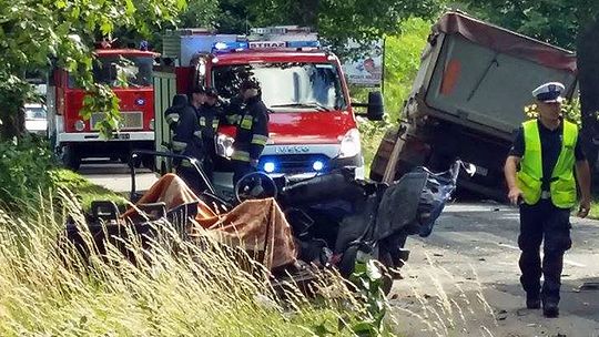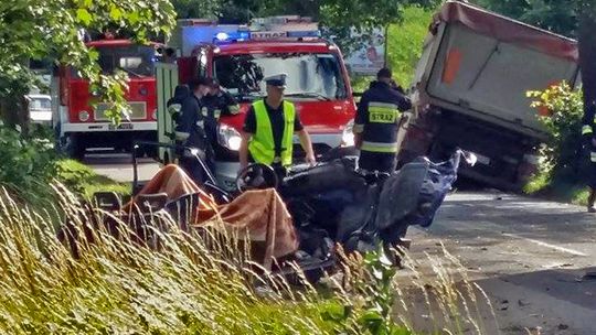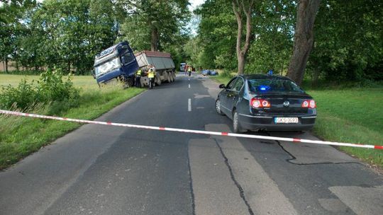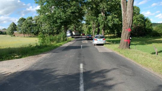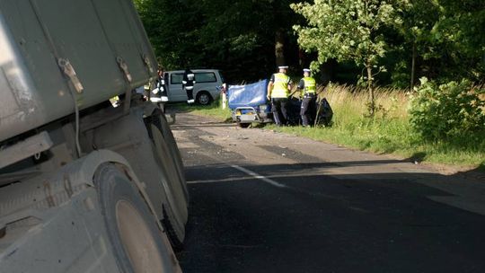 W poniedziałek po godzinie 16.00 dyżurny kościerskiej policji otrzymał zgłoszenie o wypadku, do którego doszło na trasie Nowa Karczma - Gdańsk, w miejscowości Szumleś Królewski. Na miejsce natychmiast skierowano policjantów ruchu drogowego i służby ratunkowe. Dowody zebrane przez funkcjonariuszy na miejscu zdarzenia pozwoliły wstępnie ustalić okoliczności wypadku. Najprawdopodobniej - 23-latek mieszkaniec pow. kartuskiego kierujący fiatem 126 p, jadąc w kierunku Gdańska, z niewiadomych przyczyn zjechał na przeciwległy pas ruchu i zderzył się czołowo z samochodem ciężarowym marki volvo z naczepą, którym kierował 25-latek również z pow. kartuskiego.
