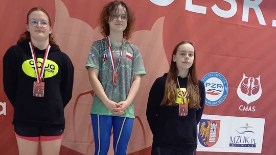 ⁃ Wiktoria Lellek(14-15 lat) srebro na dystansach 50PW, 50PP i 200PP oraz brąz na dystansach 100PP i 400PP