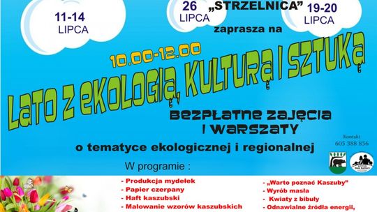 Zajęcia w Centrum Kultury Kaszubskiej "Strzelnica" trwać będą w wybrane dni lipca. Szczegóły znajdują się na plakacie.