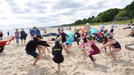 Pierwszy wyścig polegał na przebiegnięciu dystansu po plaży, wbiegnięciu do wody i pokonaniu w wodzie dystansu opływając 3 boje, a następnie wybiegnięciu z wody i pokonaniu dystansu po plaży. Rewelacyjnie zaprezentowały się zawodniczki KS Aqua Sport.
