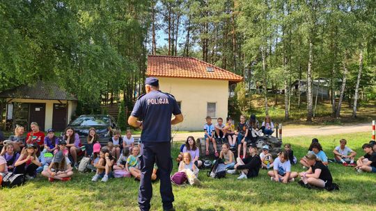 W ostatnim czasie policjanci odwiedzili miejsce wypoczynku w Szarlocie, gdzie spotkali się z dziećmi i młodzieżą. Funkcjonariusze rozmawiali z dziećmi o zagrożeniach, jakie czyhają na nie podczas wakacji, takich jak: