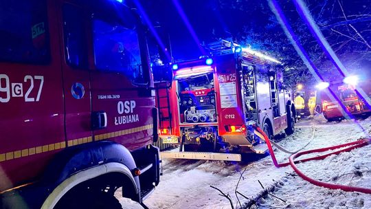 - Pierwszy pożar wybuchł w Łubianie, gdzie strażacy zmagały się z częściowo zniszczonym szczytem budynku i konstrukcją dachu.