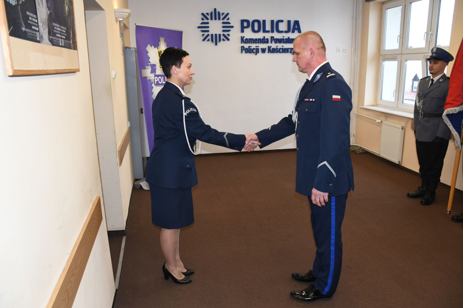 Podczas ceremonii uroczyście pożegnano dotychczasowego komendanta podinsp. Michała Domerackiego, który obejmie stanowisko I Zastępcy Komendanta Powiatowego Policji w Kościerzynie, oraz mł. insp. Grzegorza Miturę, który po wielu latach służby odchodzi na emeryturę.
