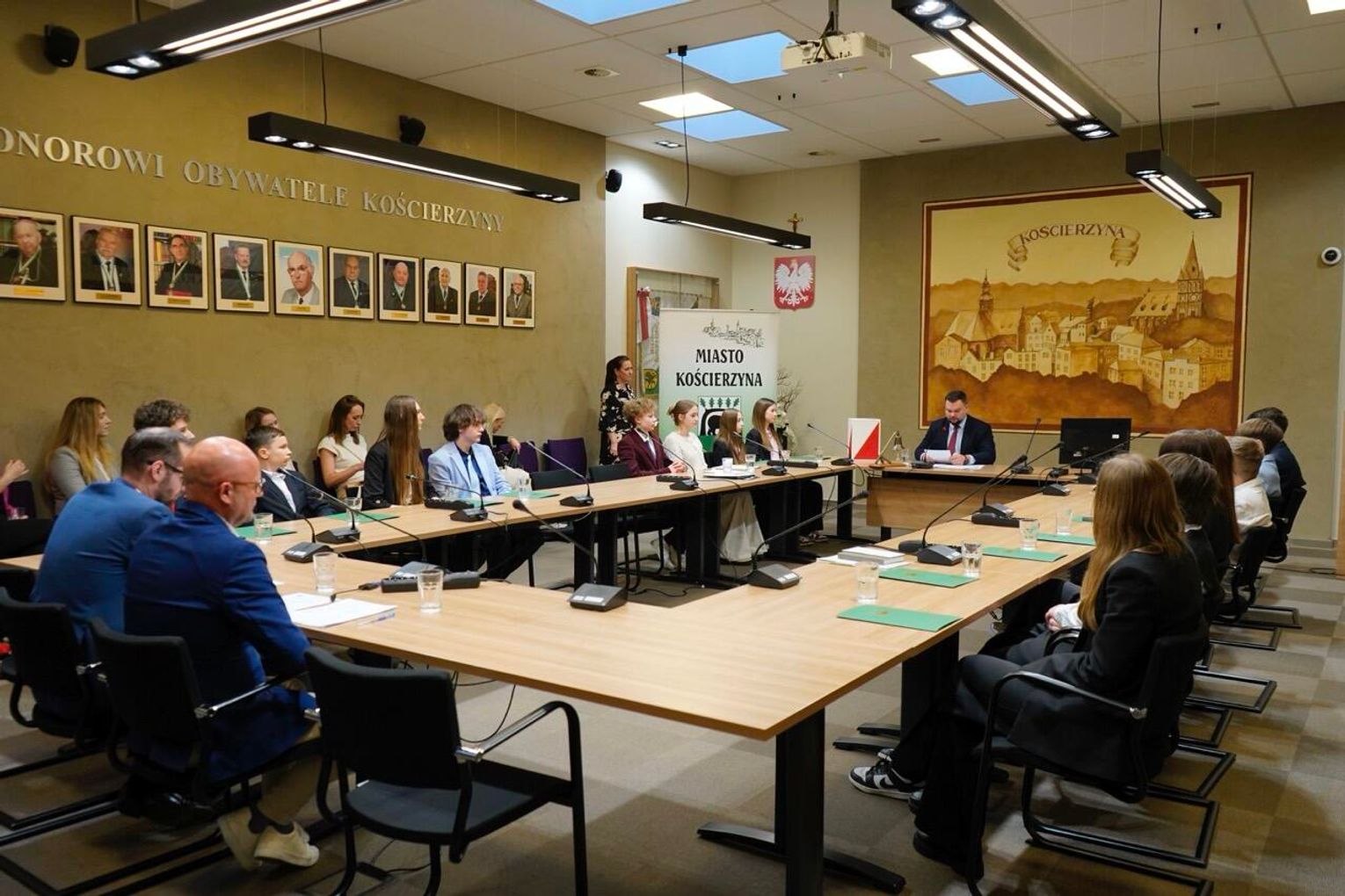 W sesji uczestniczyli również przedstawiciele władz miasta, w tym Tomasz Szala, Zastępca Burmistrza, Tomasz Wolski, Przewodniczący Rady Miasta oraz Teresa Preis, Przewodnicząca Rady Seniorów Miasta Kościerzyna, a także opiekunowie i rodziny młodych radnych.