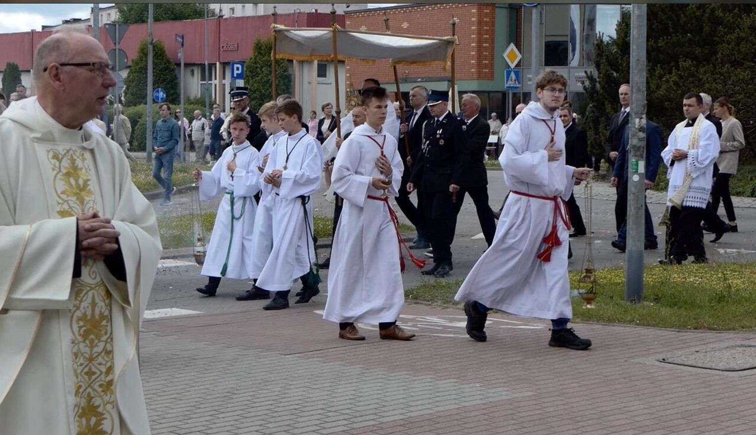 ✅ Tysiące wiernych przeszło w procesji przez główne ulice Kościerzyny, zatrzymując się przy czterech ołtarzach.
