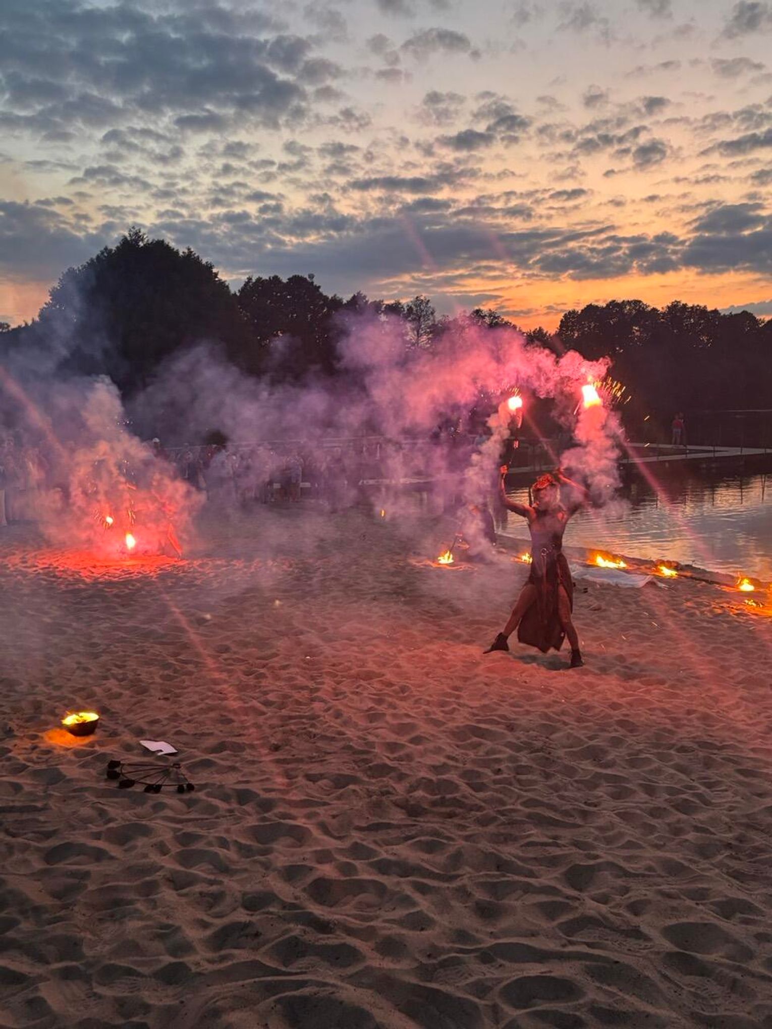 Kulminacją wieczoru był spektakularny pokaz ogni "Fireshow", który zaprezentowała grupa FEBRIS. Ogień, taniec i światło nad wodą oczarowały wszystkich obecnych. Atmosfera wspólnego świętowania unosiła się nad całym jeziorem.