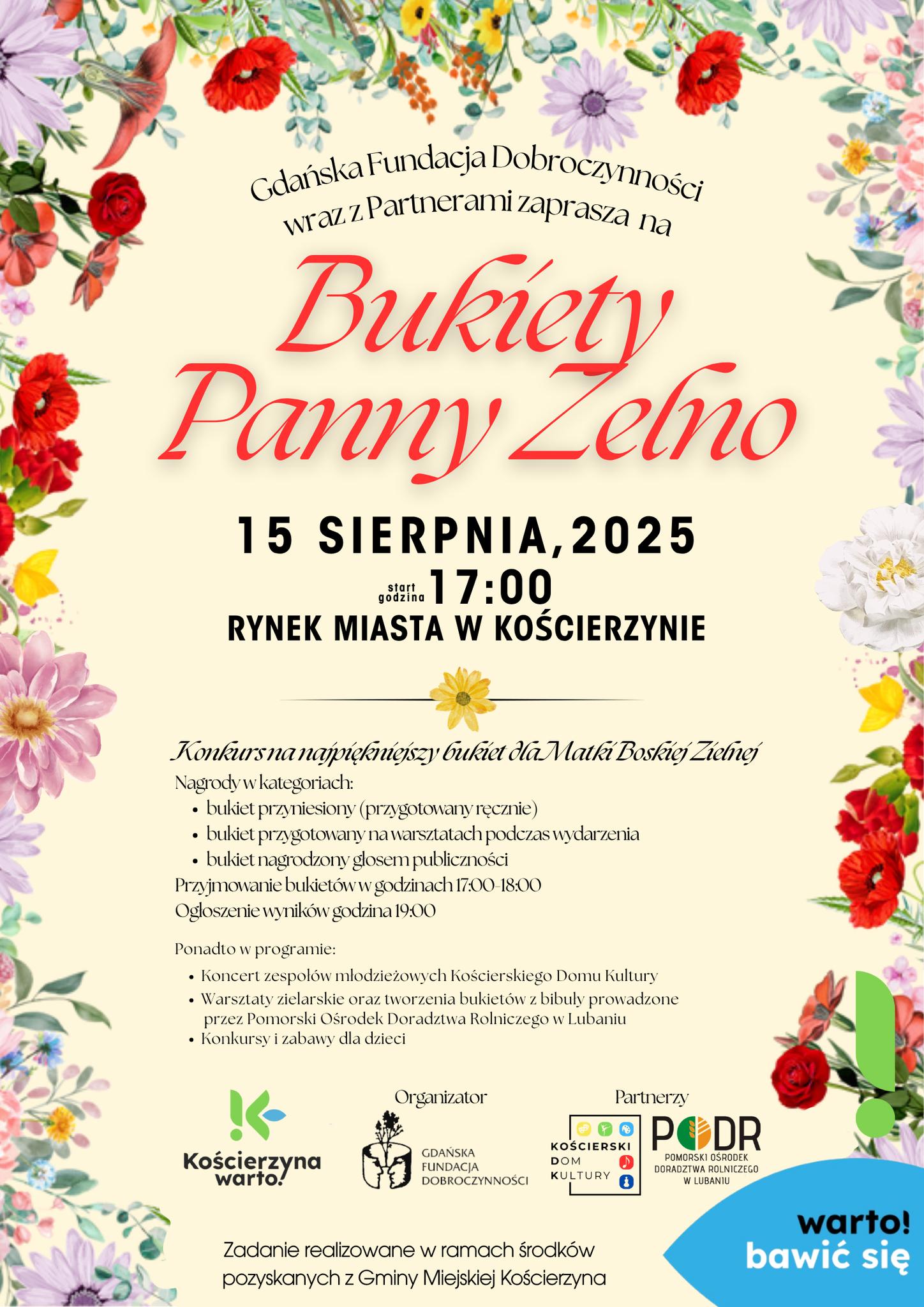 Święto Bukietów Panny Zielnej w Kościerzynie to barwne połączenie tradycji, kreatywności i wspólnej zabawy. Każdy – od najmłodszych po seniorów – znajdzie tu coś dla siebie.