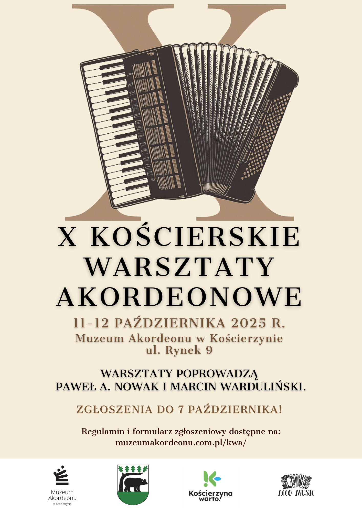 - Formularz zgłoszeniowy i regulamin dostępne są na stronie: 👉 muzeumakordeonu.com.pl/kwa