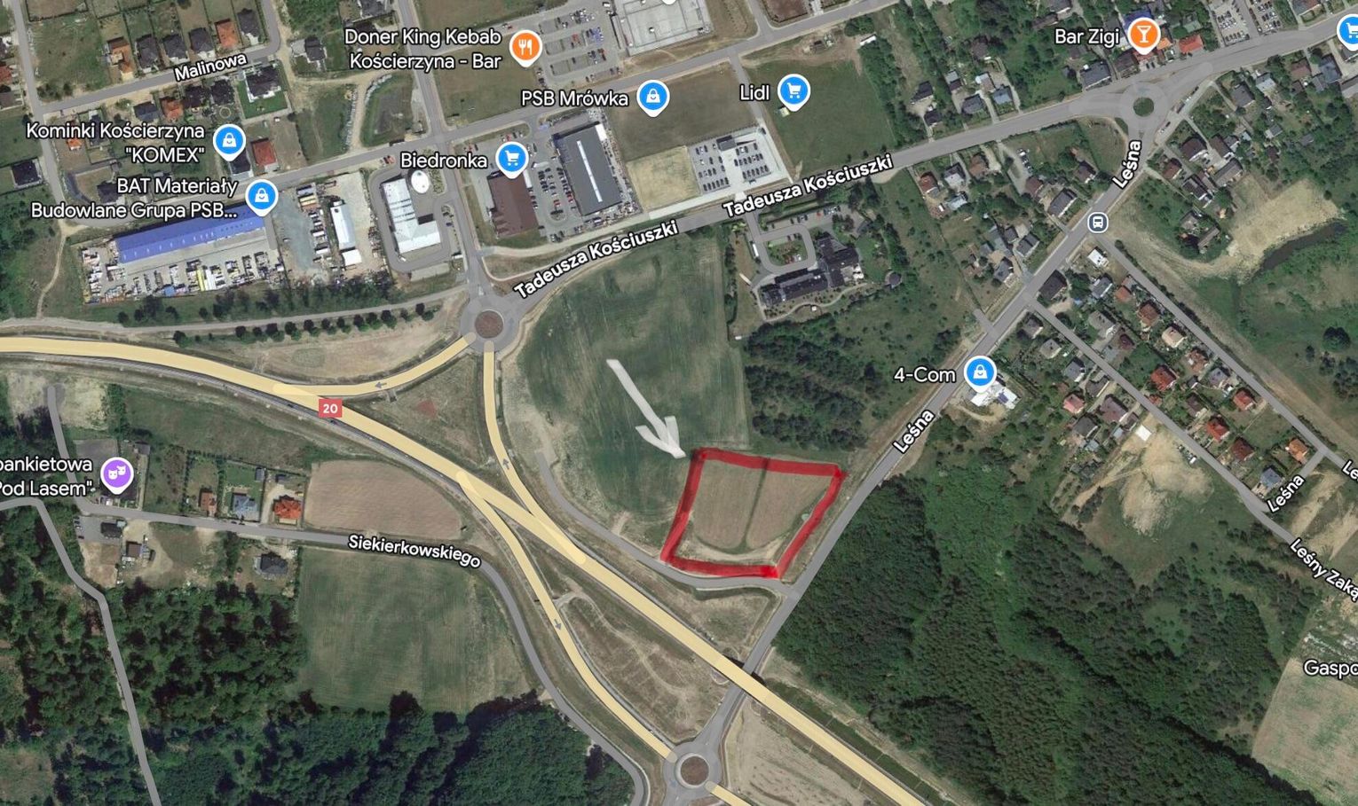 Lokalizacja komendy to działki sąsiadujące z obwodnicą Kościerzyny i hotelem Bazuny.