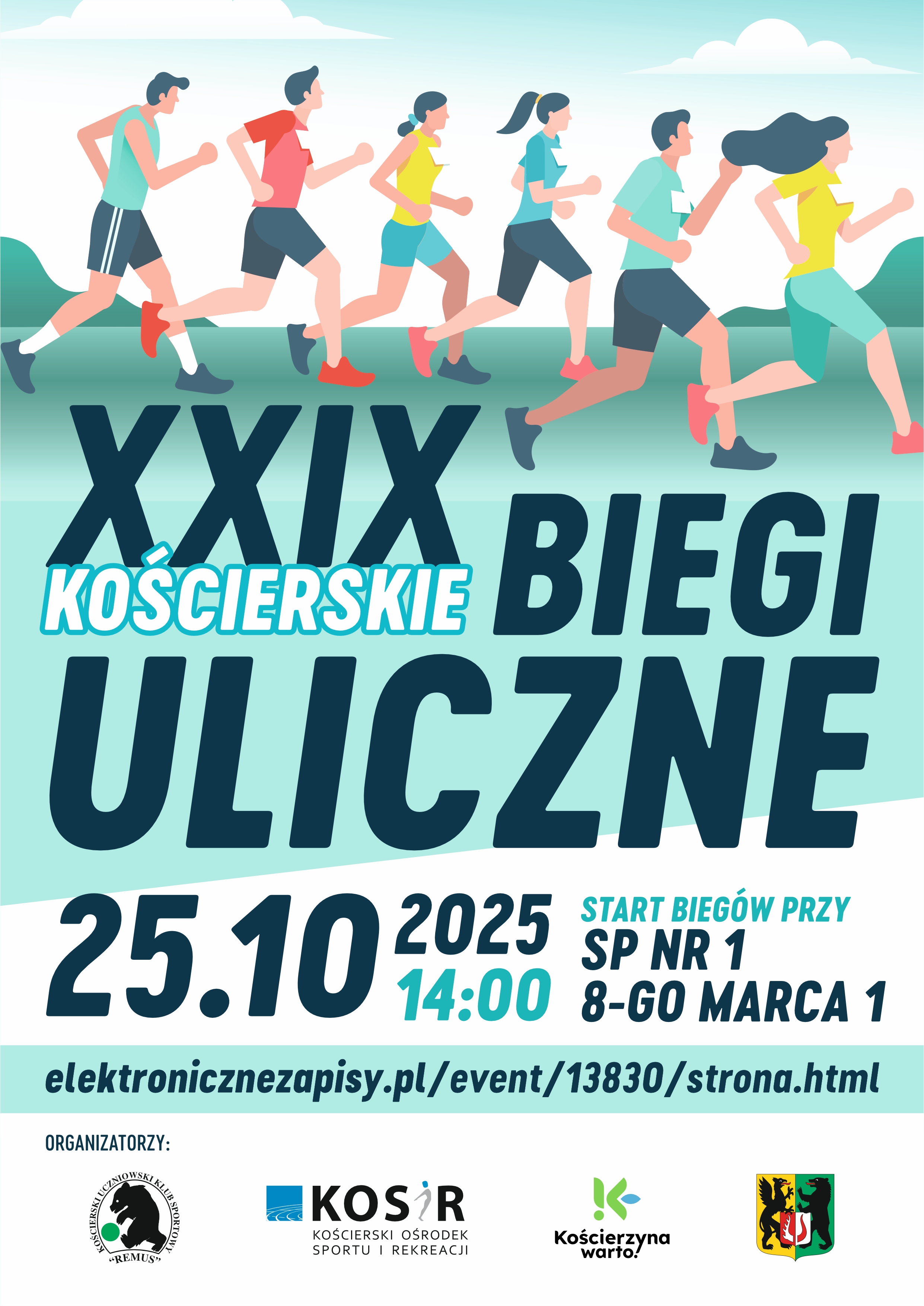 ✅ XXIX Kościerskie Biegi Uliczne odbędą się 25 października 2025 roku o godzinie 14:00 przy szkole nr 1 na ul. 8 Marca