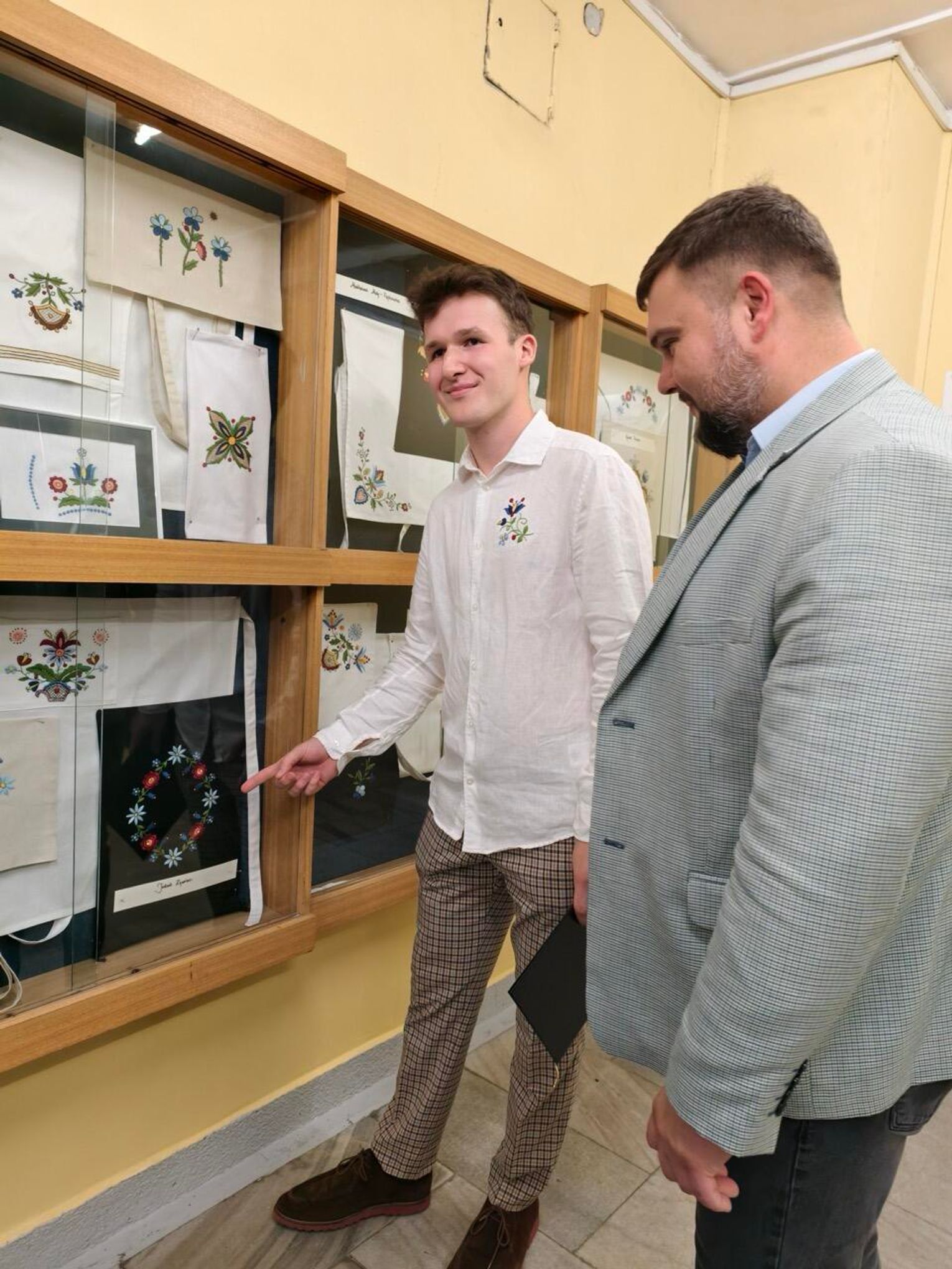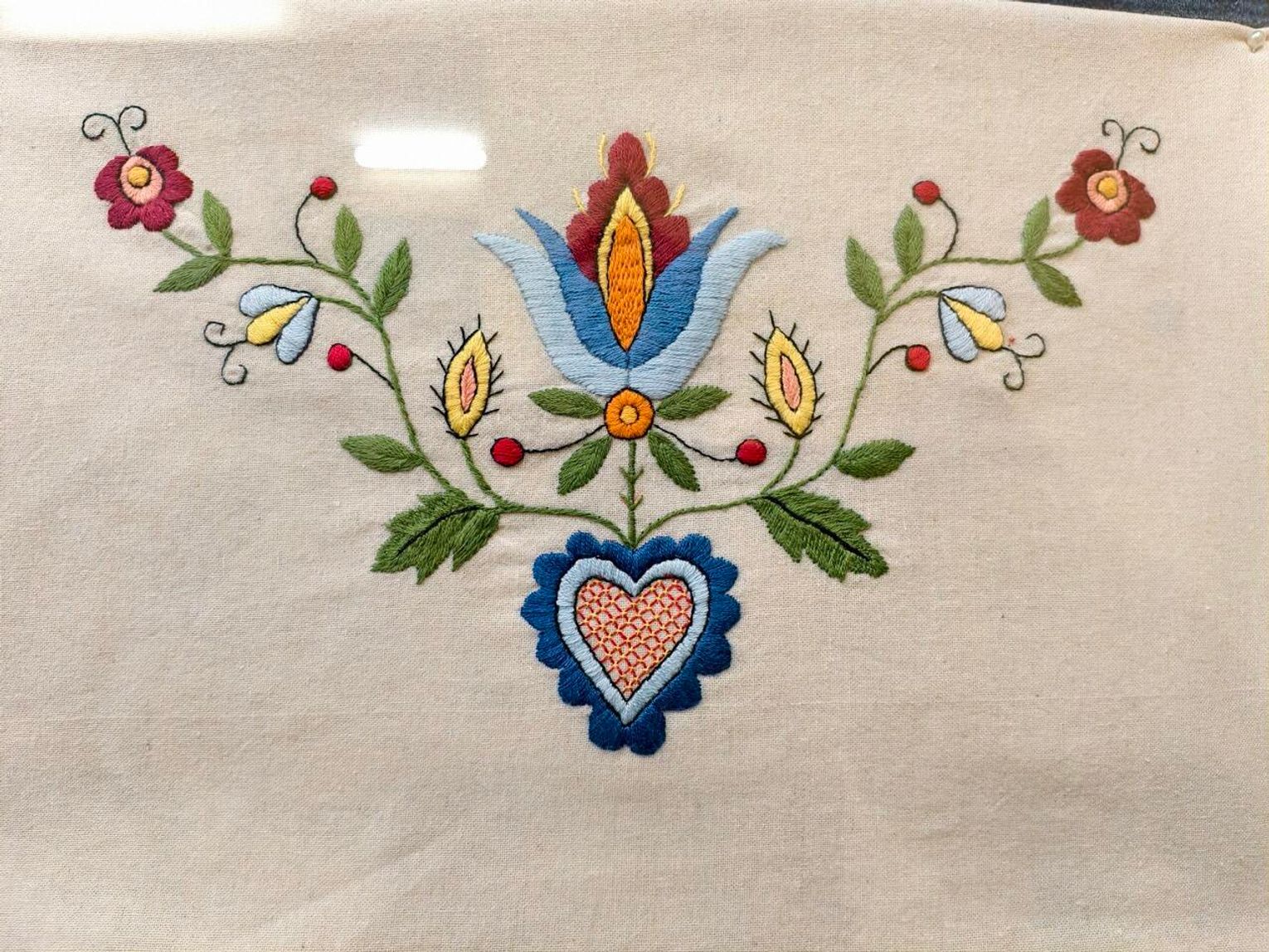 Podczas wernisażu zaprezentowano prace stworzone przez uczestników kursu hafciarskiego, zrealizowanego przez Kościerski Dom Kultury w ramach projektu „Wielopokoleniowe hafciarstwo kaszubskie w samym Sercu Kaszub”, dofinansowanego ze środków Ministra Kultury i Dziedzictwa Narodowego, w ramach programu Narodowego Instytutu Dziedzictwa „Niematerialne- przekaż dalej”. Można było obejrzeć precyzyjnie odwzorowane wzory przeniesione na tkaniny: fartuszki, poszewki, torby czy serwety; tworząc barwną i pełną symboliki mozaikę tradycji.