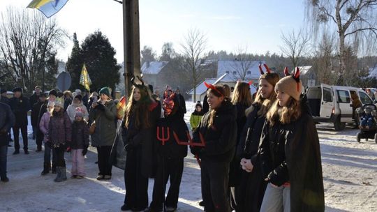 Podczas przemarszu mieszkańcy oglądali scenki przygotowane przez dzieci i młodzież z Zespołu Kształcenia i Wychowania w Dziemianach.