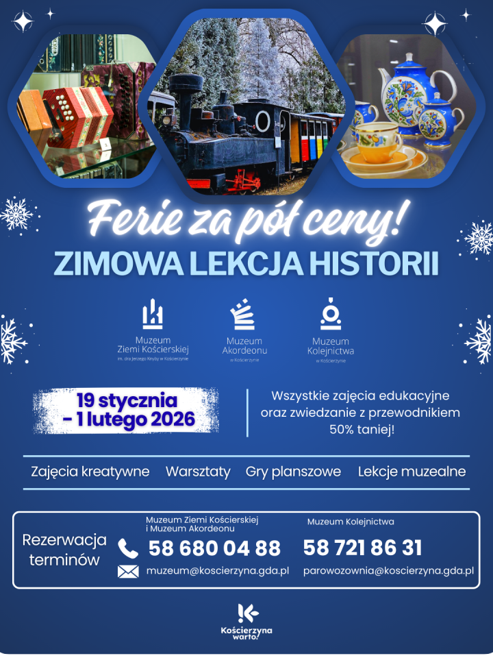 Zbliżają się ferie zimowe w województwie pomorskim – od 19 stycznia do 1 lutego 2026 r. W Kościerzynie na dzieci i młodzież czeka mnóstwo lokalnych propozycji, które łączą zabawę z nauką i kreatywnym rozwojem. Sprawdź, co przygotowały muzea, Kościerski Dom Kultury i Centrum Integracji Społecznej.