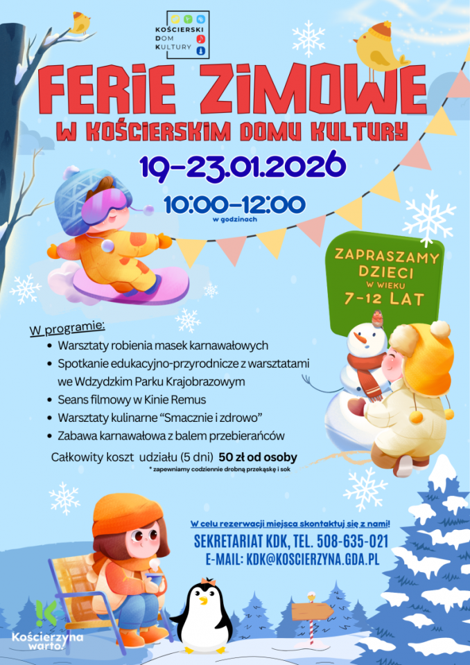 - Kościerskie instytucje kultury i edukacji przygotowały ferie pełne atrakcji dla dzieci i młodzieży.