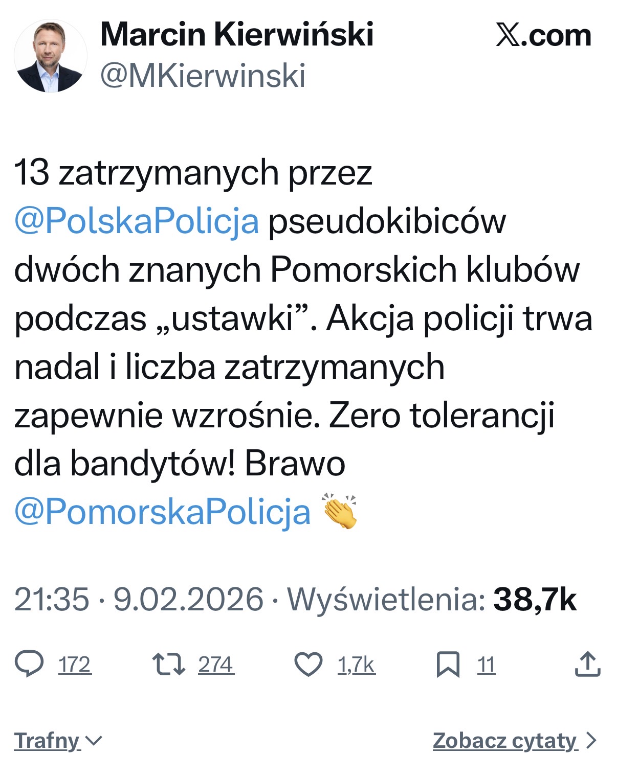 „Policja będzie bezwzględnie zwalczać wszelkie formy agresji (...) Ci bandyci sądzą, że będą bezkarni. Patologia będzie zwalczana” – oświadczył minister na platformie X.