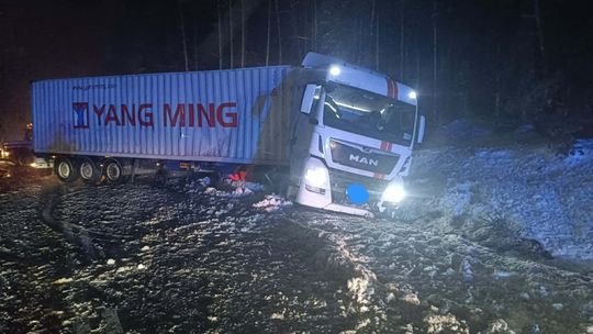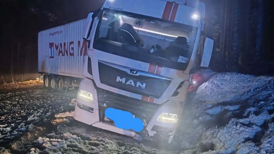 - Ciężarówka z naczepą zablokowała jezdnię