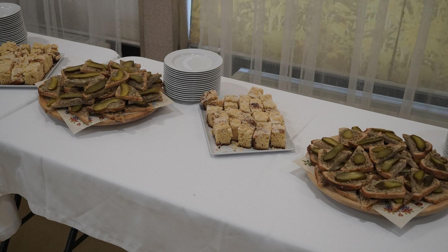 Po części oficjalnej sala wypełniła się zapachami tradycyjnej kuchni. Regionalne potrawy stały się pretekstem do integracji, rozmów i radosnego śpiewu, co stworzyło niezapomnianą, rodzinną atmosferę.