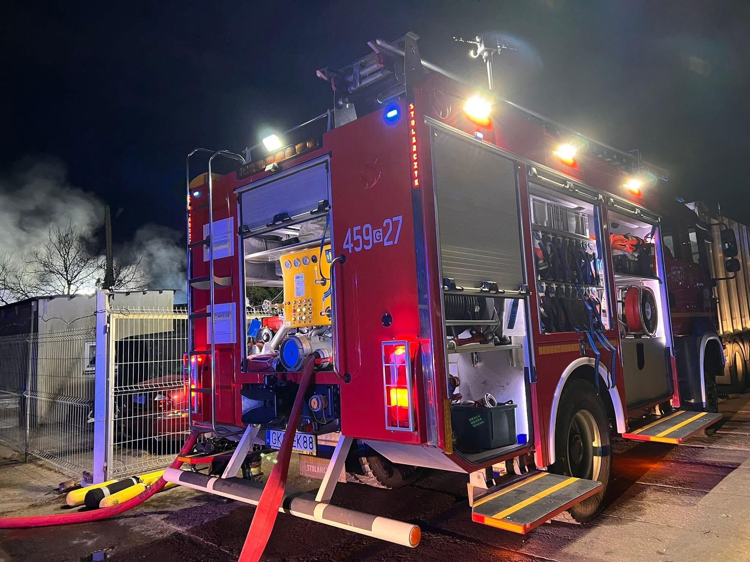 W trakcie działań strażacy wynieśli z płonącej konstrukcji butlę z gazem propan-butan. Jej bezpieczne usunięcie i schłodzenie zapobiegło potencjalnej eksplozji, która mogłaby zniszczyć okoliczne mienie.