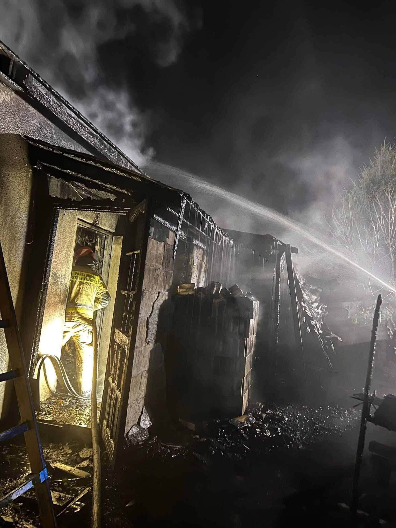 Po przybyciu na miejsce ratownicy zastali w pełni rozwinięty pożar drewnianej przybudówki. Sytuacja była groźna, ponieważ płomienie znajdowały się w bezpośrednim sąsiedztwie budynku mieszkalnego. Strażacy musieli działać dwutorowo: gasząc źródło ognia oraz chłodząc ściany domu, by zapobiec rozprzestrzenieniu się żywiołu.
