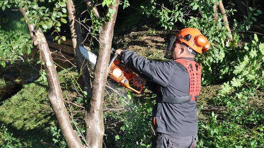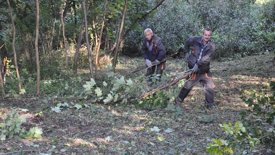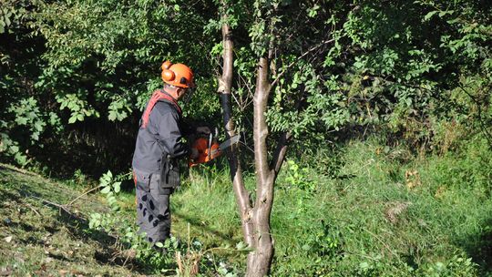 Porządkowanie terenów zielonych w parku za Urzędem Miasta